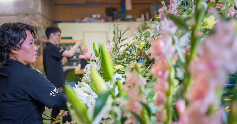 事業内容 花の入荷、加工および販売。生花祭壇の施行、撤収